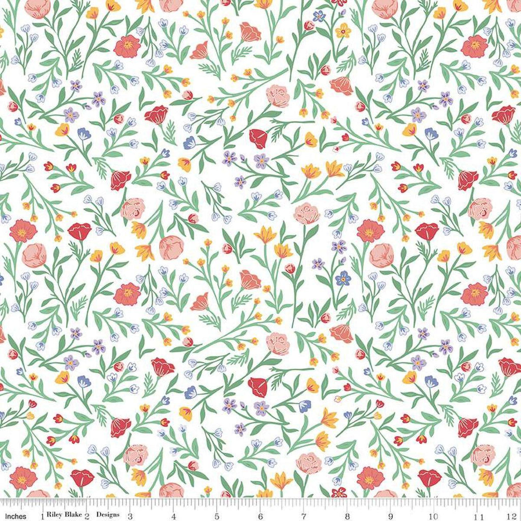 Simple Pleasures Scattered Vine C16657 White - Riley Blake Designs - Flowers Floral Leaf Leaves - Quilting Cotton Fabric