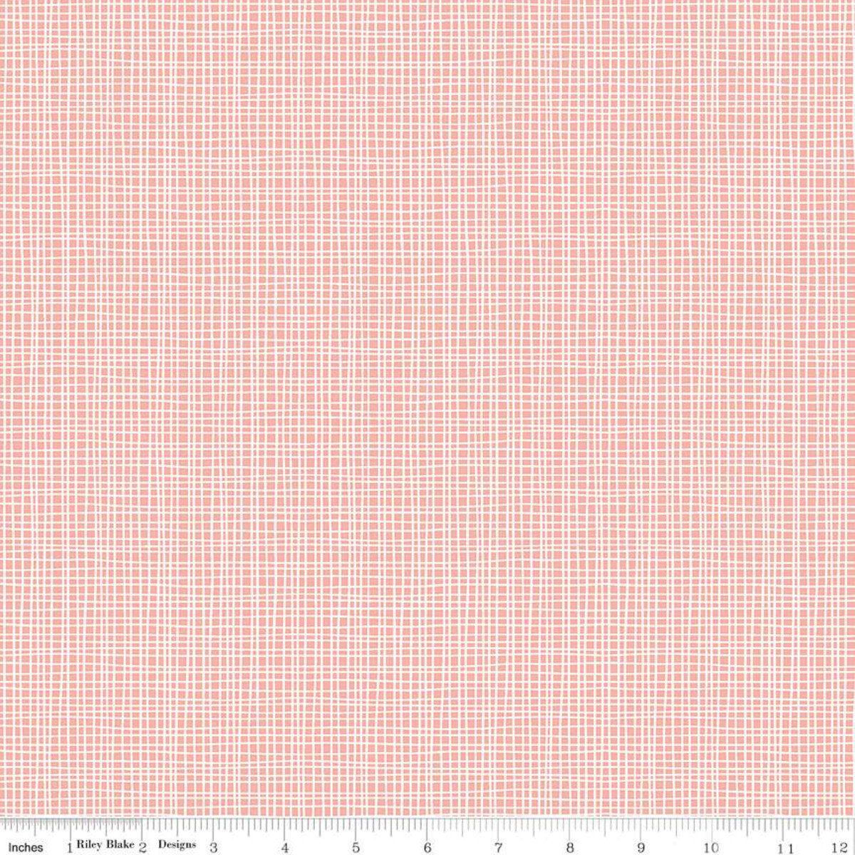 DEAL Sleep Tight Weave C10265 Coral - Riley Blake Designs - Irregular Plaid Grid White on Pink Orange - Quilting Cotton Fabric