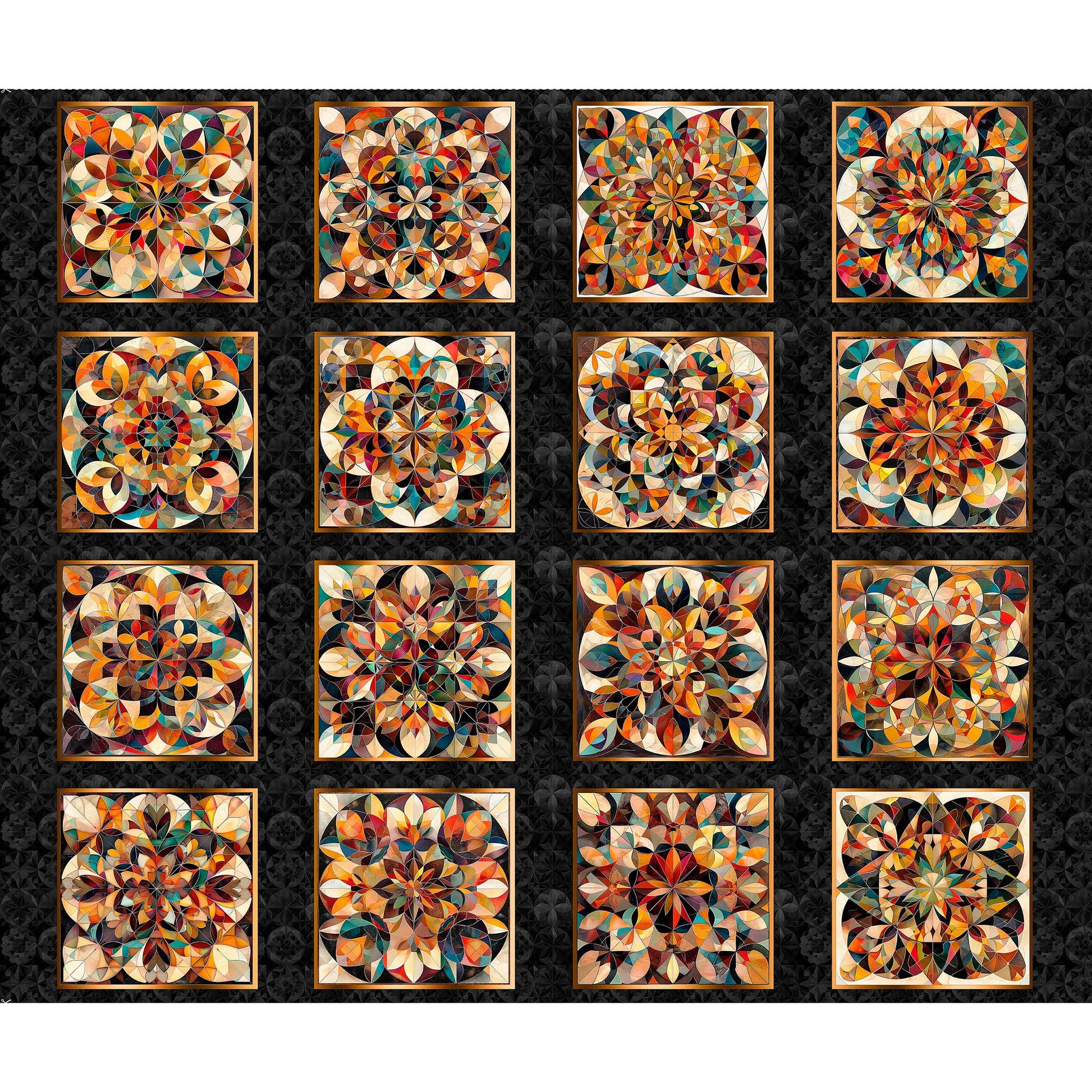 Solstice Kaleidoscope Picture Patches Panel 31227 Black J - QT Fabrics - Geometric Abstract Stained Glass - Quilting Cotton Fabric