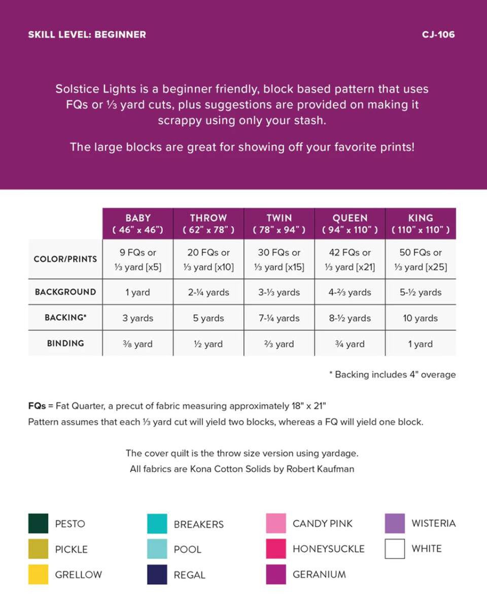 DEAL Solstice Lights Quilt PATTERN P173 - Fran Gulick - Riley Blake Designs - INSTRUCTIONS Only - Beginner Fat Quarter Friendly