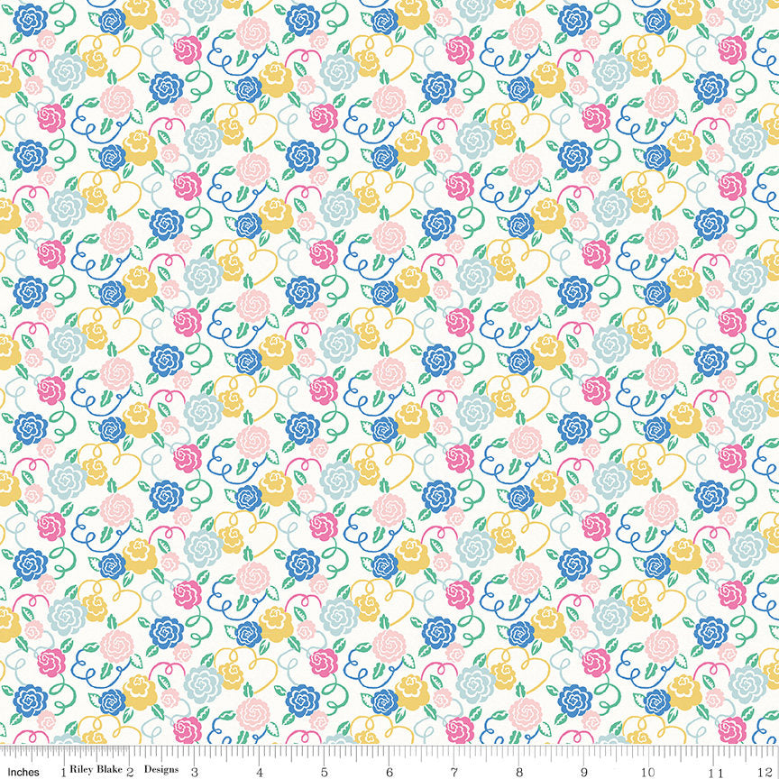 CLEARANCE The Deco Dance Collection Ribbon Bloom A - 04775926A - Riley Blake - Flowers Blue Liberty Fabrics - Quilting Cotton Fabric
