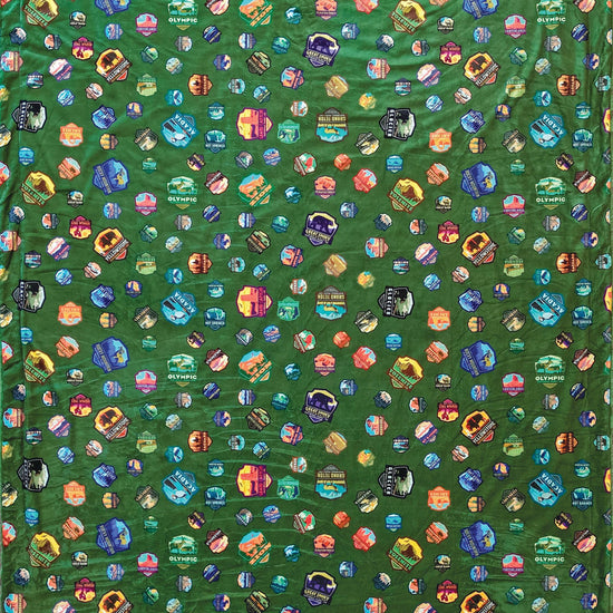 DEAL Tossed Badges Green National Parks Minky Blanket - MB1021 - Riley Blake Designs - Prepackaged Dreamy Minky Blanket - Licensed Product