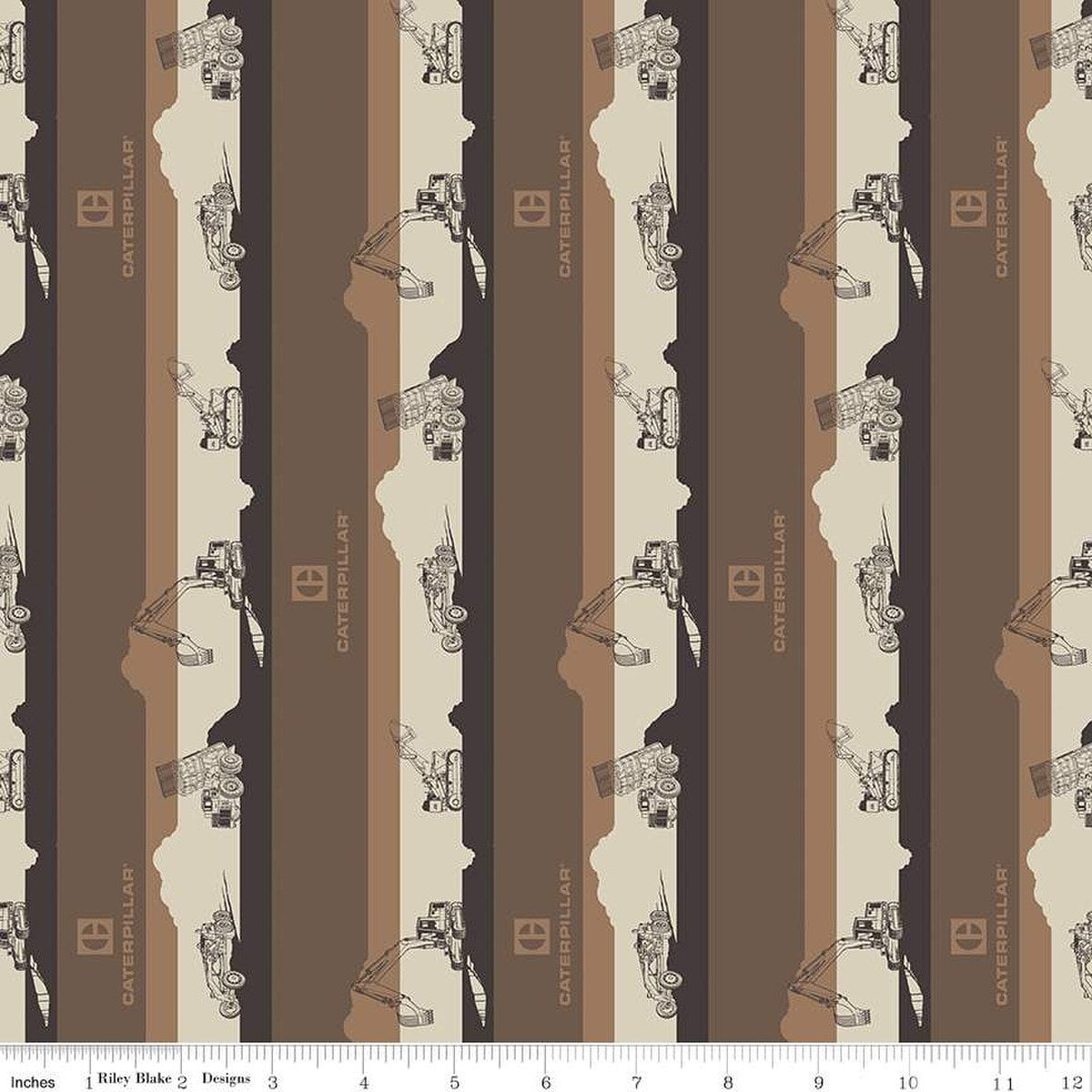 SALE Vintage Caterpillar Stripe C13841 Brown- Riley Blake Designs - Stripes Striped Construction CAT Logo Equipment - Quilting Cotton Fabric
