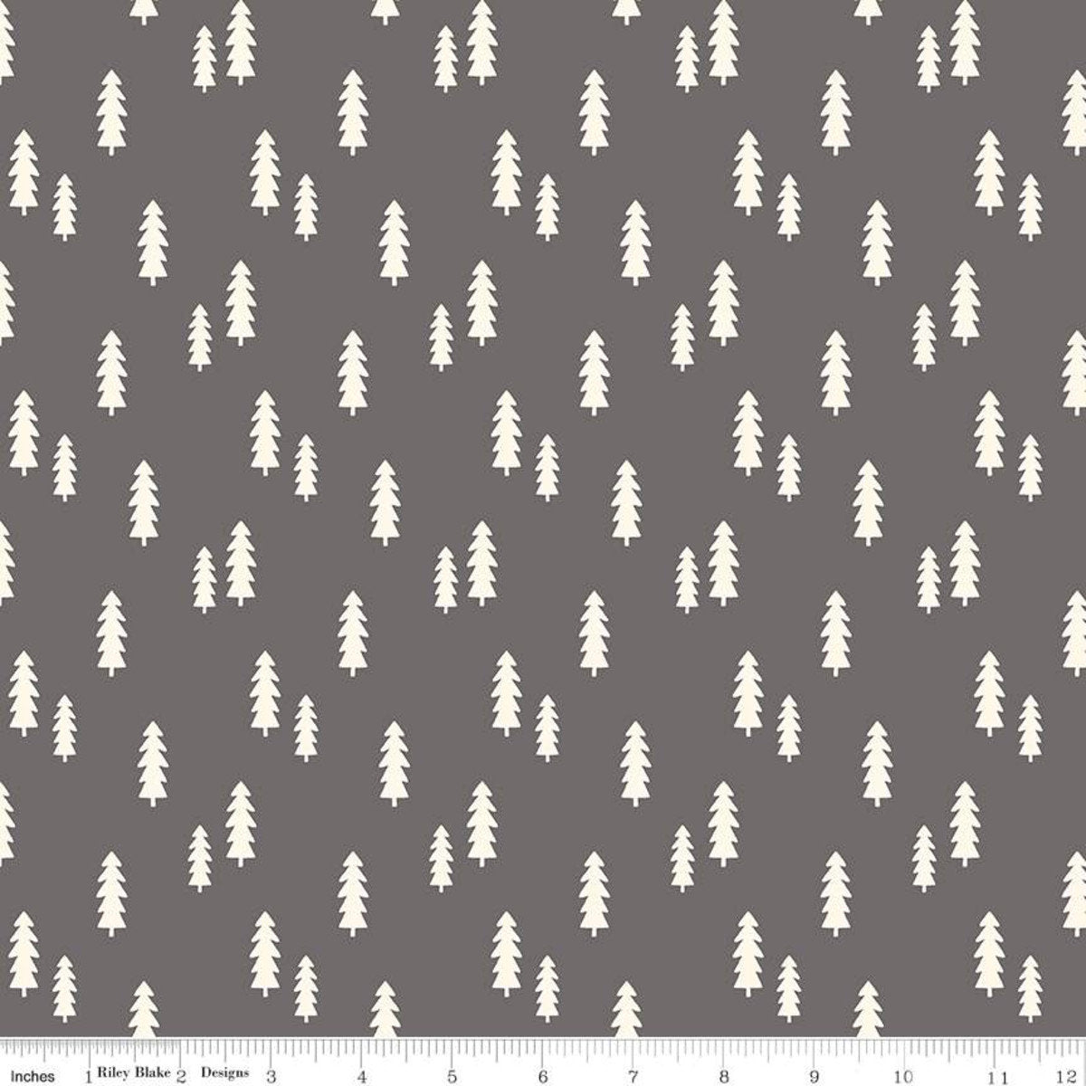 DEAL Wild at Heart Trees C9824 Gray - Riley Blake Designs - Outdoors Cream Pine Trees on Gray - Quilting Cotton Fabric